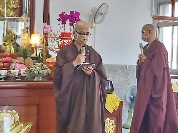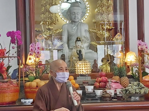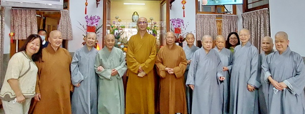 111.4.12 上午上完課,驅車趕到台中華雨精舍,参加印順導師誕辰的金剛法會。到達時法會已圓滿,上樓禮佛並於導師法像前頂禮後,就下樓接受明聖法師(照片一左四,照片二開示)與長叡法師(照片一左五,照片三開示)的盛情款待。每年都這樣匆忙跑來「趕齋」,真是慚愧!