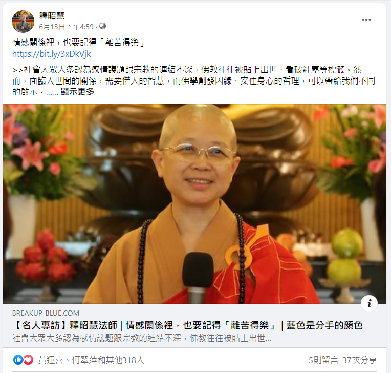 (原網址:https://breakup-blue.com/%E3%80%90%E5%90%8D%E4%BA%BA%E5%B0%88%E8%A8%AA%E3%80%91%E9%87%8B%E6%98%AD%E6%85%A7%E6%B3%95%E5%B8%AB-%E6%83%85%E6%84%9F%E9%97%9C%E4%BF%82%E8%A3%A1%EF%BC%8C%E4%B9%9F%E8%A6%81%E8%A8%98%E5%BE%97/?fbclid=IwAR2ux9DqICzOgN3tKJ-nDm1Tssy23G6xrCtNPPtPX4s-LHHXtvAIjItvxIA)