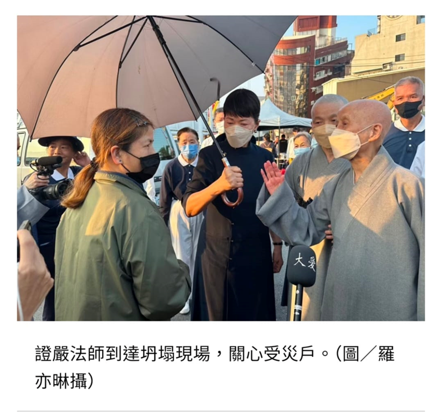 4月3日地震當天,慈濟立刻動員救災,證嚴法師特地前往花蓮各處救災現場關切受災戶。(中國時報新聞照片)