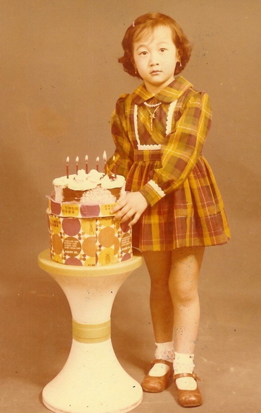 長相甜美,聲音嬌滴滴的玲文小妹妹,穿著姑媽守性法師裁製的漂亮衣裙。(圓凱法師提供)