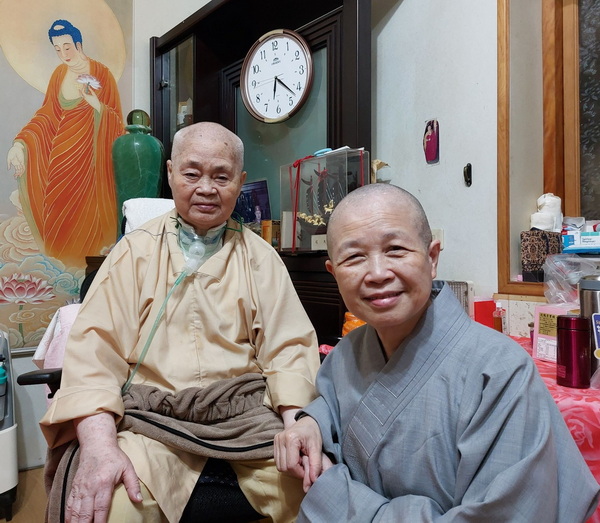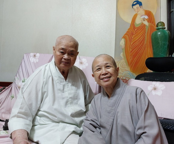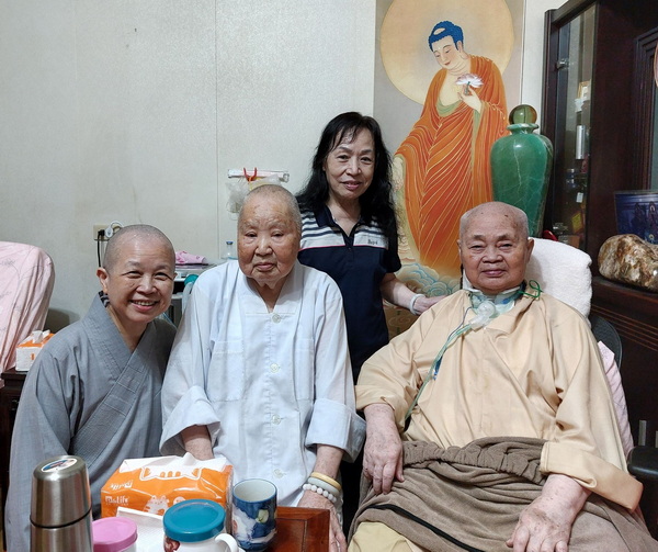 注意到房內坐著一位面容慈祥的老居士,得悉她是凱師的母親,也就是老法師的弟媳蕭秀琴居士。原來她從台東北上,發心照護老法師。知道凱師有母親的支持與陪伴,還有護法居士的熱心協助,我這才稍感放心。