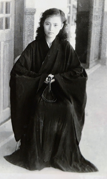 台東師父少年時代就已多才多藝。我以前只知道,她在家時就是才藝了得的裁縫師;看到相片才發現,她還擅長手工紡織。那張她手腳並用地紡紗織布的照片,讓人剎時穿越歷史時空,宛如走回「前工業革命時代」。
