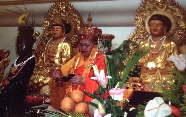 法師就因其焰口專長而結緣甚廣,甚受基隆信眾的擁戴,各方的禮請不斷。套句她的話:「一年365天,我幾乎要放366堂焰口。」就這樣,她們三人依靠著一場一場的經懺佛事,一點一滴地累積嚫資,終於建成了簡樸的寺宇殿堂。