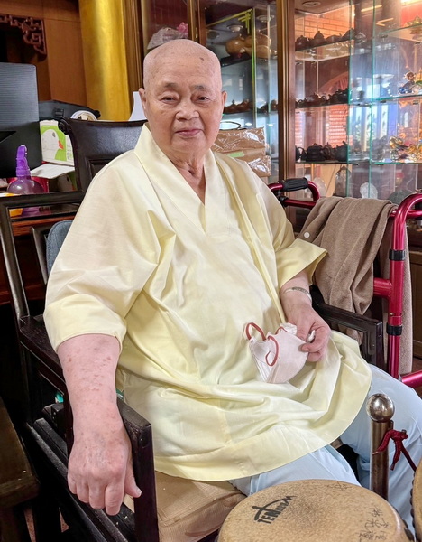 老法師雖然戴著氧氣管,然而她眼神清亮,氣力充足,一如既往地親切溫暖。凱師告知:就在前幾天,寺裡放焰口時,她老人家還親自上陣,連續打鼓三個小時。我還是不免擔心老法師氣切的癒後狀況——掛念她何時才能摘下氧氣管?何時才能嗓音復元?