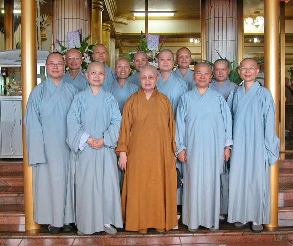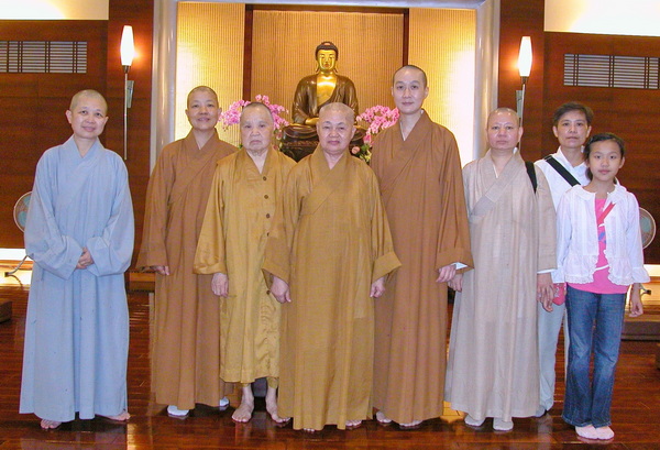 97.7.7上午,我率學眾12人,前往基隆佛光禪寺,參加守盛長老尼追思讚頌大典,臨別前與守性法師在佛光寺大殿前合影。