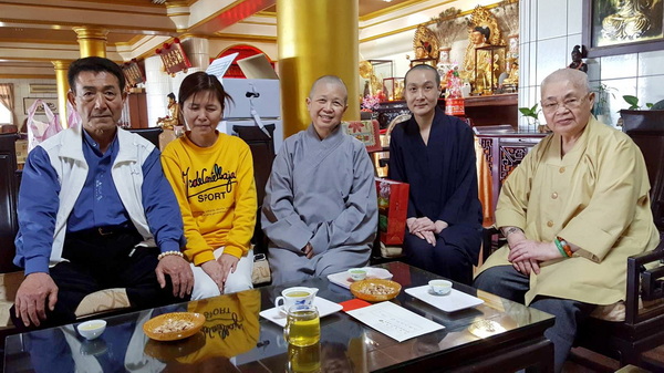 107.4.6六年前到佛光寺拜訪老法師,與老法師、圓凱法師、嫁到日本的凱師表姐及表姐夫合影。