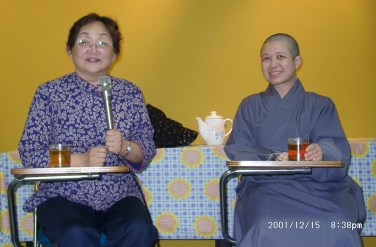 90.12.15. 昭慧法師應邀至晚晴協會演講(右:創會人施寄青)