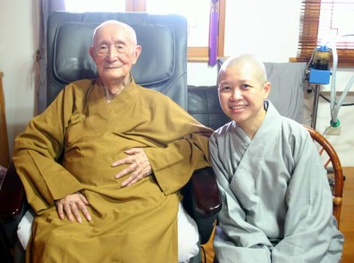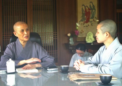 93.5.17 昭慧法師請示印順導師對其論文觀點之看法 (中時:簡東源先生攝于靜思精舍)。
