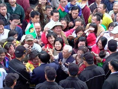 熱情民眾見到總統出來,「當選」之聲響亮不絕。