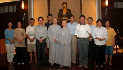 91.9.10 江燦騰教授之令慈江黃基妹老夫人滿七之期,孝眷到院參加晚課共修。