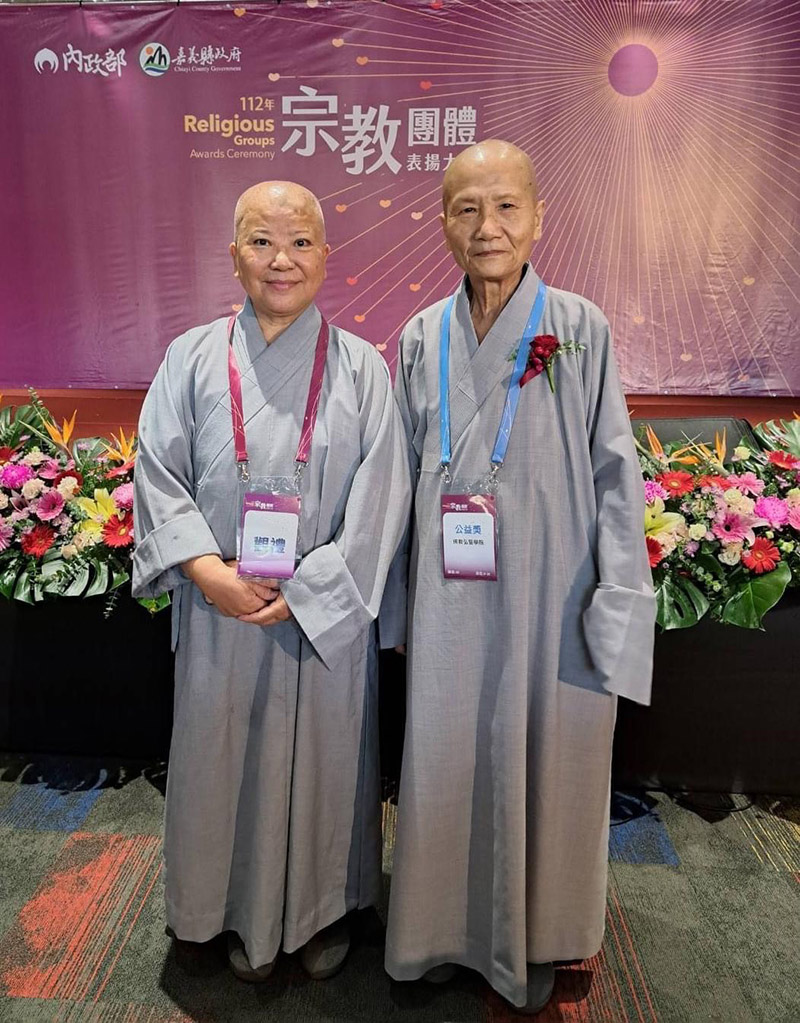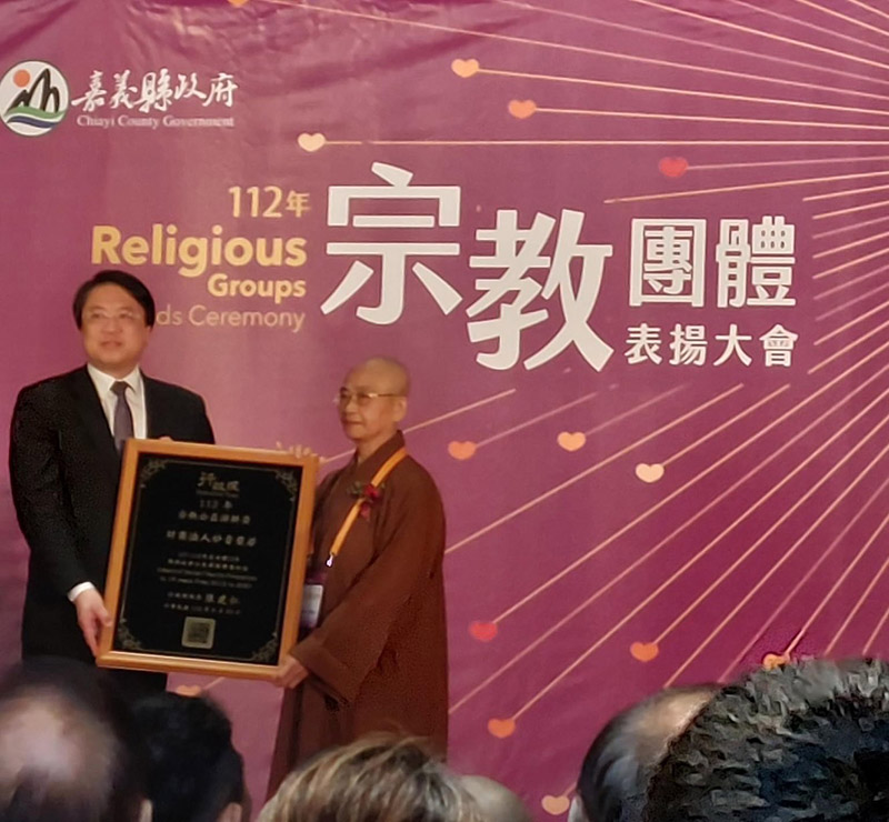 宗教公益深耕獎是連續10年以上獲頒宗教公益獎的團體,恭賀嘉義妙雲蘭若獲頒此獎,由住持常光法師親臨受獎。