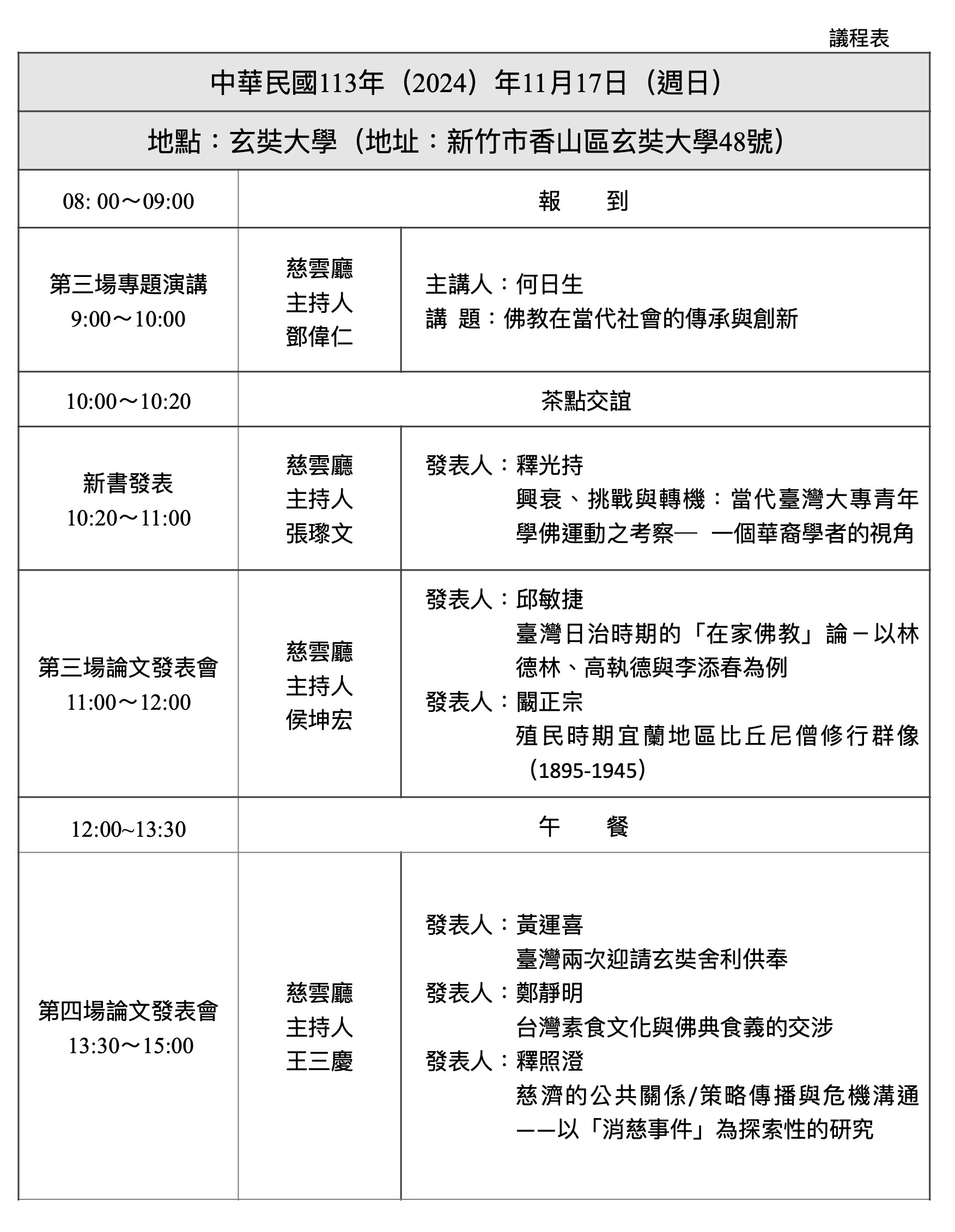 主辦單位:玄奘大學臺灣佛教研究中心、玄奘文教基金會、弘誓文教基金會