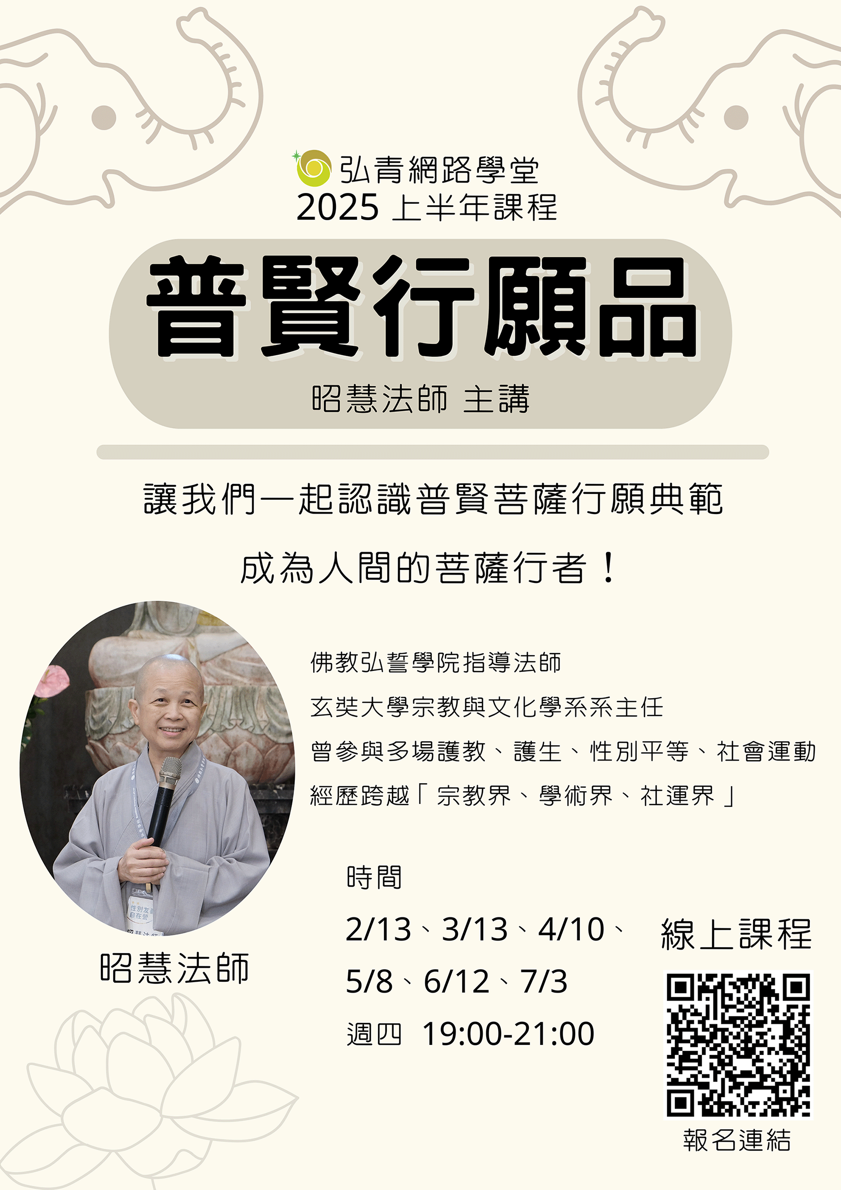 弘青網路學堂 | 2025 上半年課程 | 昭慧法師 主講