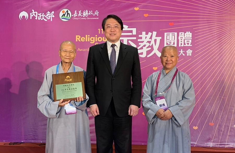 內政部於112年8月25日舉辦宗教團體表揚大會,本院榮獲『宗教公益獎』,由住持心皓法師、監院心謙法師代表學院參與大會領獎。本年度計有161個宗教團體獲頒宗教公益獎,13個宗教團體獲頒宗教公益深耕獎,由内政部林右昌部長頒發獎牌。...