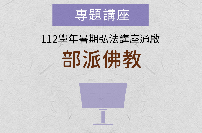 課程簡介: 1.以緣起教法為核心,以部派佛教發展的兩條路線——「依蘊立我」及「依心立我」為主軸,介紹部派思想。 2.介紹部派佛教與大乘二大唯心論的關係。 3.本生故事與部派思想。